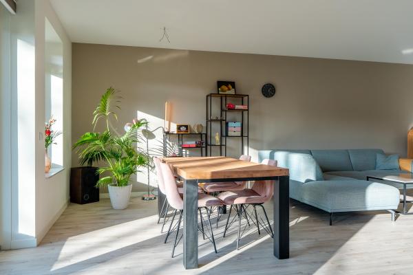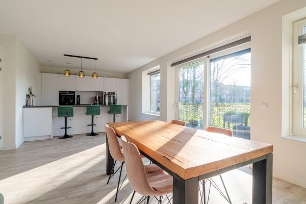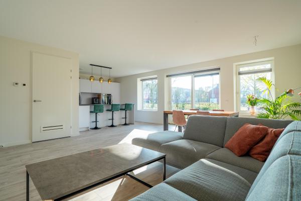Dit 3-kamer appartement uit 2019 is fraai op een hoek gelegen en is van alle gemakken voorzien. Dankzij de grote raampartijen op het zuidwesten valt het daglicht rijkelijk de woonkamer binnen, wat zorgt voor een warme en open sfeer. De living vloeit mooi samen met de complete open keuken, een echte eyecatcher voor kookliefhebbers. Met een kookeiland en bar, en luxe apparatuur zoals een stoomoven, Quooker en Bora kookplaat, is dit dé ideale plek om te koken én gezellig te borrelen terwijl u contact houdt met uw gasten. Verder beschikt de woning over twee ruime slaapkamers en een moderne badkamer met onder andere een inloopdouche. Vanuit de woonkamer stapt u zó het riante terras van maar liefst 21 m² op. Dankzij de royale afmetingen, de gunstige zonligging en het vrije uitzicht over de omgeving is dit een heerlijke plek om volop van de buitenlucht te genieten. Ook aan duurzaamheid is gedacht: met energielabel A, volledige isolatie en 2 zonnepanelen woont u hier energiezuinig en comfortabel, wat u direct merkt in de lage maandlasten. Parkeren is bovendien geen gedoe: per appartement is er één eigen parkeerplaats beschikbaar aan de voor- of achterzijde. Voor fietsen en extra opslag is er een eigen berging/schuur met stroom.