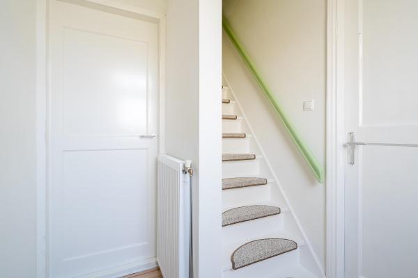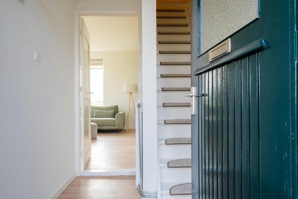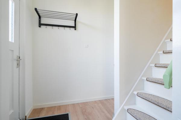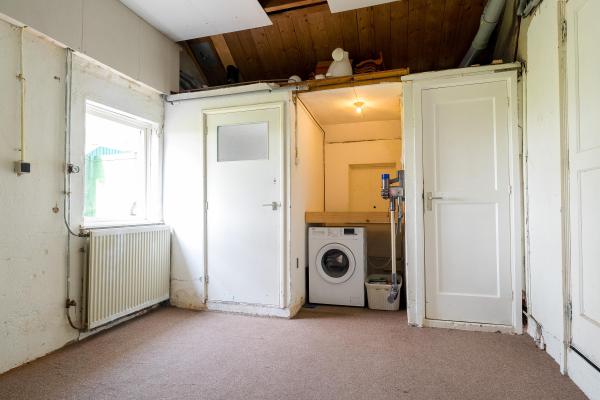 Entree/hal met trapopgang, lichte woonkamer met vrij uitzicht en een moderne halfopen keuken (2024) voorzien van diverse inbouwapparatuur, kelder, eetkamer, ruime bijkeuken met witgoedaansluiting en toegang naar buiten, toilet, badkamer met douche en wastafel.