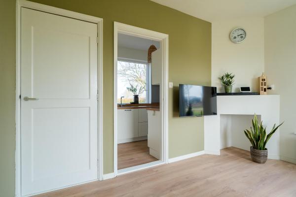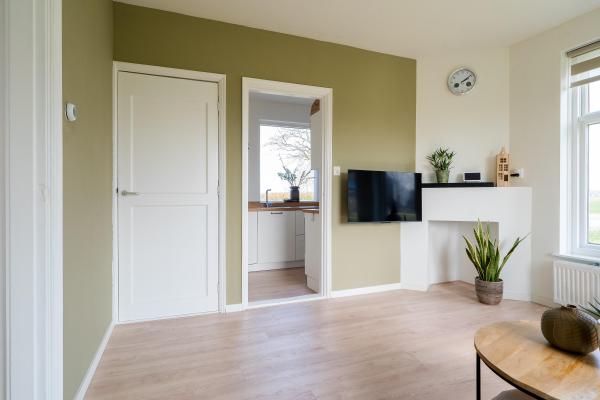 Deze leuke woning uit 1947 is de afgelopen jaren grotendeels gemoderniseerd en combineert karakter met hedendaags wooncomfort. Tijdens de verbouwing zijn onder andere de wanden, vloeren, keuken en badkamer vernieuwd, waardoor de woning een frisse en moderne uitstraling heeft gekregen. Bij binnenkomst leidt de hal naar de diverse ruimtes. De lichte woonkamer is een fijne plek om te ontspannen en biedt dankzij de grote ramen een indrukwekkend weids uitzicht over het uitgestrekte Groningse landschap. Dit panoramische vergezicht maakt elke dag wonen op deze locatie bijzonder. De halfopen keuken is modern en praktisch ingericht, voorzien van hoogwaardige inbouwapparatuur en voldoende werkruimte. Vanuit de hal is tevens de royale bijkeuken bereikbaar, een multifunctionele ruimte die bijvoorbeeld als wasruimte of extra opslag gebruikt kan worden. Op de eerste verdieping bevinden zich twee ruime slaapkamers, beide met veel lichtinval en voldoende ruimte voor een comfortabele inrichting. De tweede badkamer is stijlvol en functioneel, uitgerust met moderne voorzieningen. Naast de woning staat een vrijstaande houten garage/berging, ideaal voor het uitoefenen van een ruimtevragende hobby, het opslaan van spullen of het veilig stallen van een auto of motor. De tuin rondom de woning biedt volop privacy en leent zich perfect voor buitenactiviteiten. Of het nu gaat om een ontspannen ochtend op het terras met een kop koffie of een gezellige barbecue met vrienden en familie, deze buitenruimte nodigt uit om optimaal te genieten van het buitenleven. En het mooiste? Het unieke, weidse uitzicht over het Groningse landschap, dat elke dag een ander schilderachtig tafereel biedt.