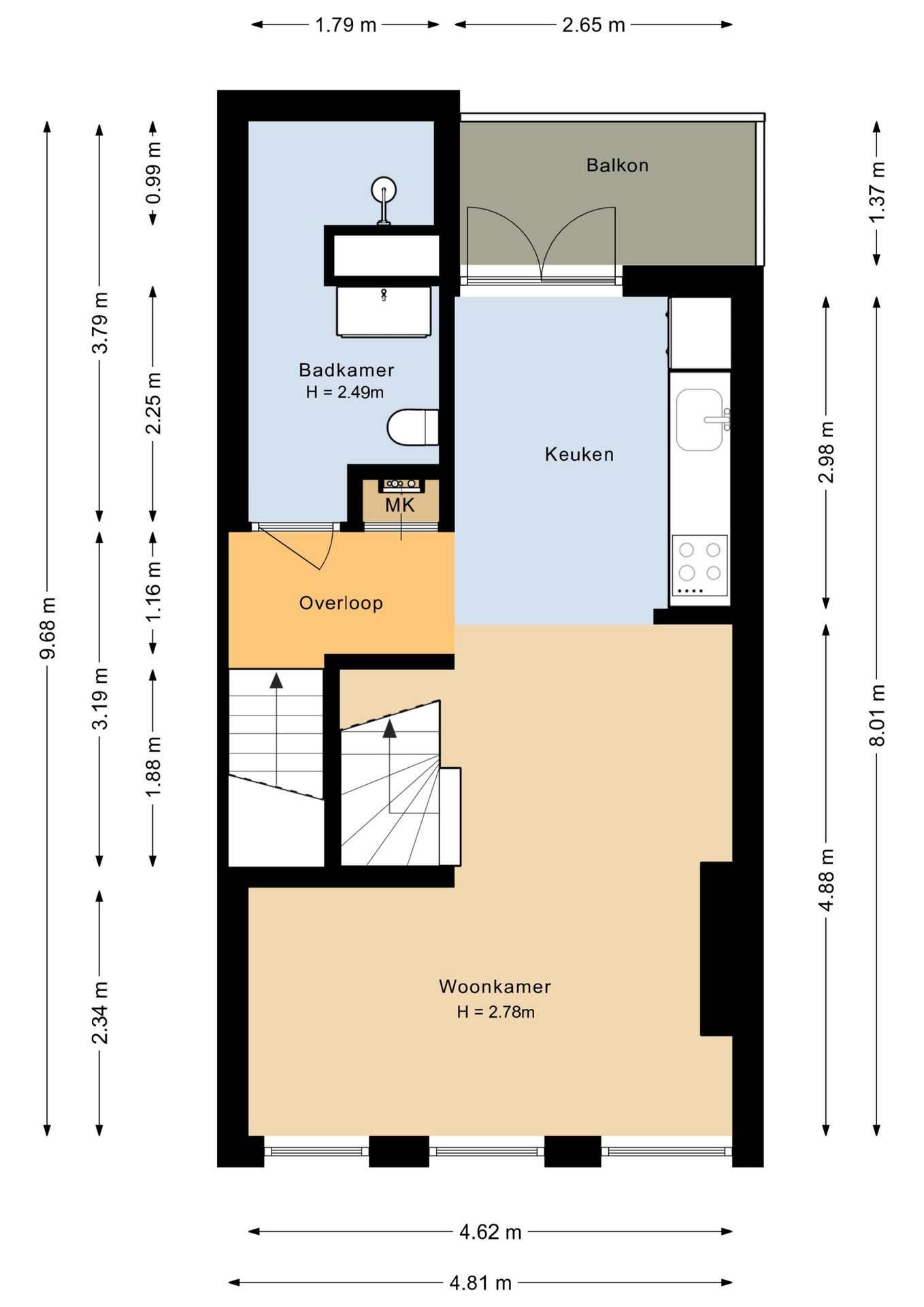 Het appartement, oorspronkelijk gebouwd in 1898, is recent grondig gemoderniseerd en verkeert daardoor in vrijwel instapklare staat. U hoeft alleen nog een mooie vloer te kiezen, uw spullen te verhuizen en het genieten kan beginnen. Via de eigen entree betreedt u de lichte en sfeervolle woonkamer, waar de luxe open keuken direct in het oog springt. De openslaande deuren naar het balkon zorgen voor een fijne verbinding met buiten. Op deze woonlaag bevindt zich tevens de moderne badkamer, voorzien van een inloopdouche en een stijlvol wastafelmeubel. Op de tweede verdieping vindt u nog twee comfortabele slaapkamers, ideaal als slaap-, werk- of logeerkamer. De praktische indeling, het prettige formaat en de luxe afwerking maken dit appartement zeer geschikt voor alleenstaanden of stellen die op zoek zijn naar comfortabel wonen op een centrale locatie. Het balkon aan de achterzijde is gesitueerd op het noordwesten en biedt een fijne plek om na een lange dag te ontspannen en van de buitenlucht te genieten.