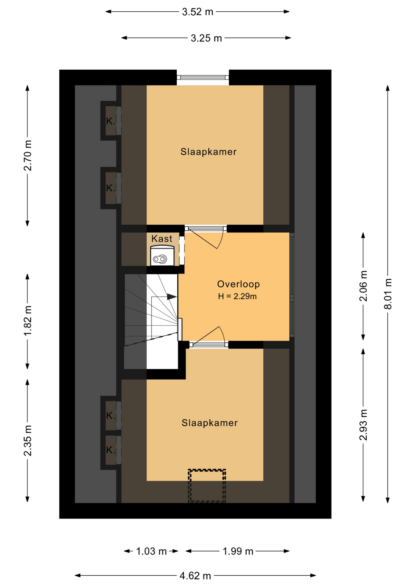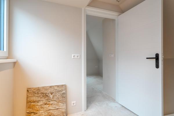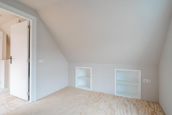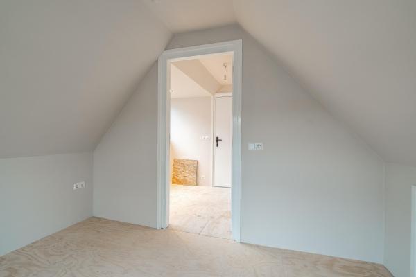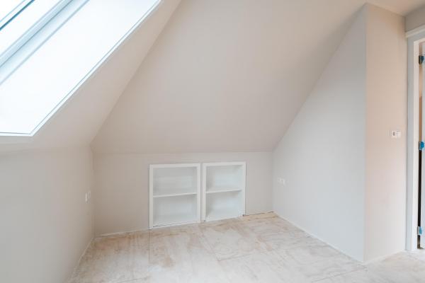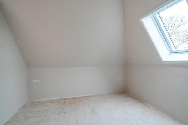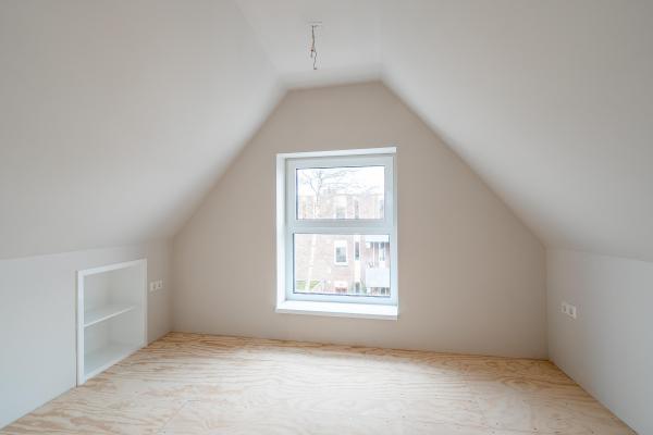 Overloop met dakkapel en witgoedaansluiting, 2 slaapkamers.