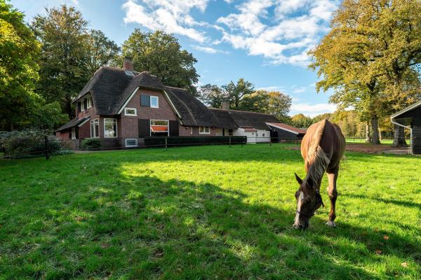 Karakteristiek landhuis "Klein Dennenrode" met eigen bos en manege op royaal perceelTe midden van het Drentse landschap, op een prachtige kavel van bijna 6 hectare met eigen bos en weilanden, ligt dit rietgedekte, vrijstaande landhuis met manege. Een unieke combinatie van karakter, comfort en ruimte en ideaal voor de paardenliefhebber!