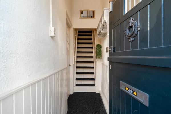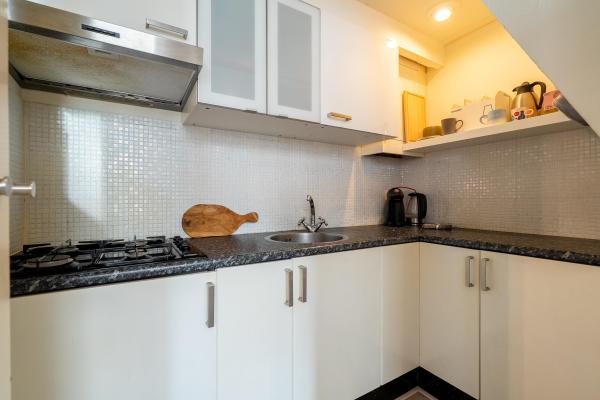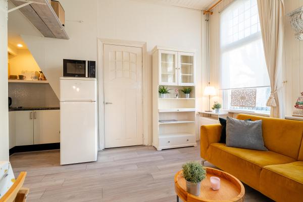 Deze charmante schipperswoning uit 1885 verwelkomt u via de entree en ademt direct sfeer. De hal leidt naar de gezellige woonkamer met open keuken, voorzien van inbouwapparatuur. Het hoge plafond, de fraaie glas-in-lood ramen en de centraal geplaatste schouw zorgen voor een warme, intieme uitstraling waarin u zich meteen thuis voelt. Via de vaste trap bereikt u de bovenverdieping met een overloop, een knusse slaapkamer en een complete badkamer met douche, wastafelmeubel en toilet. Aan de overzijde van het autovrije straatje ligt een gezamenlijk terras die door de bewoners wordt gebruikt als een verlengstuk van de woonkamer. Een plek om na een lange dag neer te strijken met een goed glas, om samen te barbecueën of simpelweg te genieten van het kabbelende water en de voorbijvarende bootjes.