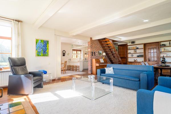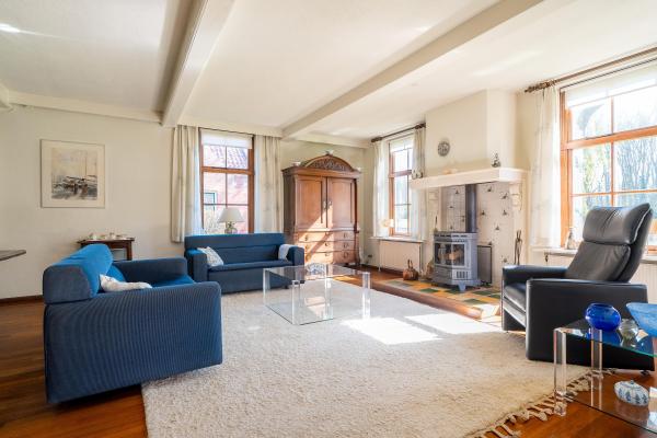 Deze ruime en karakterstieke woning maakt deel uit van een bijzonder stukje Veendam, rijk aan historie en nostalgie. Vanuit de woning heeft u een prachtig, vrij uitzicht over een sierlijke vijverpartij. Oorspronkelijk stonden soortgelijke statige panden langs het Oosterdiep, destijds bewoond door welvarende kapiteins. Het huidige ensemble werd in de jaren ’70 gebouwd, maar ademt nog steeds de grandeur van toen. Bij binnenkomst via de hal komt u in de royale, lichte woonkamer. Grote ramen bieden een prachtig uitzicht op het water en het omringende groen, wat zorgt voor een gevoel van rust en ruimte. Aansluitend vindt u het eetgedeelte en een halfopen keuken. Aan de voorzijde bevindt zich een extra kamer, ideaal als werkruimte, maar met een kleine aanpassing ook uitstekend geschikt als slaapkamer met naastgelegen badkamer. Op de eerste verdieping zijn vier slaapkamers en een ruime badkamer aanwezig. Daarmee is de woning uitermate geschikt voor gezinsbewoning. De begane grond biedt daarnaast volop mogelijkheden voor werken aan huis, of om de woning met een relatief kleine verbouwing levensloopbestendig te maken. De fraai aangelegde tuin rondom de woning is royaal van opzet, biedt veel privacy en is een heerlijke plek om in alle rust van de natuur te genieten. Daarnaast beschikt de woning aan de zijkant over een vrijstaande stenen garage van maar liefst 36 m², voorzien van een handige vliering – ideaal voor het stallen van voertuigen of als extra bergruimte.