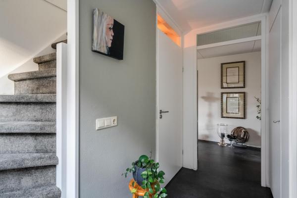 De gezinswoning, gebouwd in 2001, verkeert in een goede staat van onderhoud en heeft een praktische, prettig ingedeelde plattegrond. Via de hal betreedt u de lichte L-vormige living, die dankzij de grote raampartijen een fijne sfeer heeft. Aansluitend vindt u de luxe open keuken uit 2023, volledig vernieuwd en van alle gemakken voorzien. Direct naast de keuken ligt de praktische bijkeuken. Op de eerste verdieping bevinden zich drie slaapkamers en een badkamer. De tweede verdieping biedt een vierde slaapkamer, waardoor er volop ruimte is voor een gezin, een thuiswerkplek of hobby’s. De woning is vanaf de bouw uitstekend geïsoleerd en recent voorzien van acht zonnepanelen, wat heeft geleid tot een energielabel A+. Dit zorgt voor veel wooncomfort én lage energielasten. Aan de achterzijde ligt de verzorgde, onderhoudsarme tuin op het zuiden: een heerlijke plek om te ontspannen en van de zon te genieten. Aan de voorzijde beschikt de woning over een ruime oprit met plek voor meerdere auto’s.