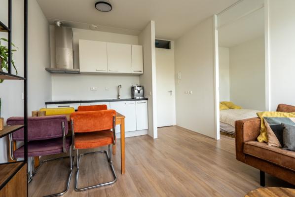 Dit leuke appartement is gelegen op de eerste verdieping van het eigentijdse complex De Helperberg biedt deze woning een knusse sfeer met een verrassend ruimtelijk gevoel. Het appartement beschikt over een lichte woonkamer met open inbouwkeuken, bijkeuken, slaapkamer en nette badkamer. Op de begane grond bevindt zich een fietsenberging die door bewoners gebruikt kan worden. En de auto kunt u kwijt op eigen terrein. Het complex stamt uit 2007, maar kreeg in de zomer van 2024 een complete renovatie, waardoor men direct kan intrekken zonder zorgen. Ideaal voor starters of ouders die hun studerende kinderen een eigen, veilige plek willen bieden.