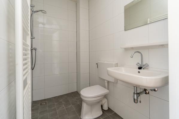 Entree/hal, woonkamer met open keuken, bijkeuken met witgoedaansluiting en cv-opstelling, slaapkamer, badkamer met douche, wastafel en toilet.