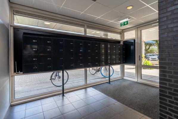 Centrale afgesloten hal met intercom, lift, trappenhuis, toegang tot de gezamenlijke fietsenstalling.