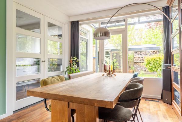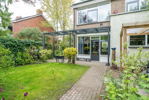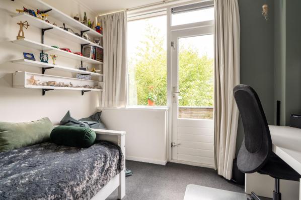 Aan een mooie brede en groen opgezette laan en op loopafstand van het centrum Haren gelegen zeer ruime hoekwoning met vrijstaande garage en tuin op het zuidwesten.Deze riante familiewoning van ca. 155 m² is goed onderhouden en heeft een aangename indeling. Op de benedenverdieping bevinden zich een lichte woonkamer met een houtkachel en een moderne keuken. Boven vindt u twee verdiepingen met in totaal 5 slaapkamers, een ideale werk c.q. 6e slaapkamer en een moderne badkamer. Met 6 (slaap)kamers is deze woning ideaal voor een groot gezin of voor wie veel ruimte nodig heeft voor thuiswerken. De zonnige achtertuin met een gezellige overkapping, ligt op het zuidwesten en biedt veel privacy en rust. De vrijstaande stenen garage is tevens bereikbaar vanuit de tuin, waar u veilig uw auto kunt parkeren. Ook aan de zijkant van de woning is er een parkeerplaats op eigen terrein voor 2 auto’s beschikbaar.