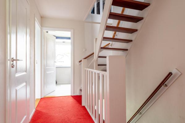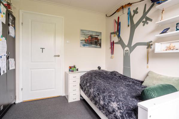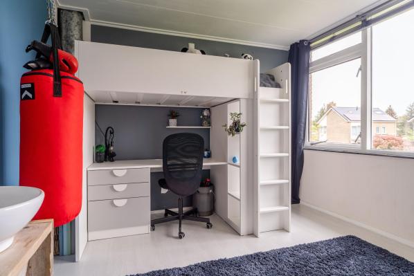 Deze riante familiewoning van ca. 155 m² is goed onderhouden en heeft een aangename indeling. Op de benedenverdieping bevinden zich een lichte woonkamer met een houtkachel en een moderne keuken. Boven vindt u twee verdiepingen met in totaal 5 slaapkamers, een ideale werk c.q. 6e slaapkamer en een moderne badkamer. Met 6 (slaap)kamers is deze woning ideaal voor een groot gezin of voor wie veel ruimte nodig heeft voor thuiswerken. De zonnige achtertuin met een gezellige overkapping, ligt op het zuidwesten en biedt veel privacy en rust. De vrijstaande stenen garage is tevens bereikbaar vanuit de tuin, waar u veilig uw auto kunt parkeren. Ook aan de zijkant van de woning is er een parkeerplaats op eigen terrein voor 2 auto’s beschikbaar.