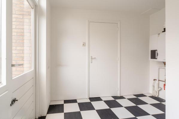 Entree/ruime hal met trapopgang, toilet met fonteintje, lichte woonkamer met open haard en toegang naar de tuin, dichte nette keuken voorzien van diverse inbouwapparatuur, bijkeuken met cv-opstelling, slaapkamer.
