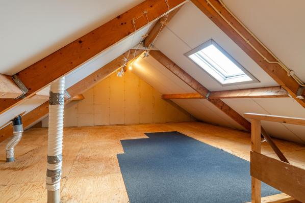 Ruime zolder met dakraam middels vaste trap te bereiken.
