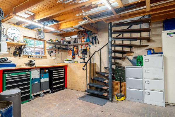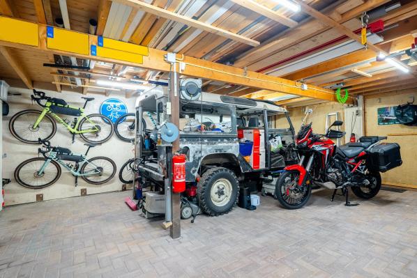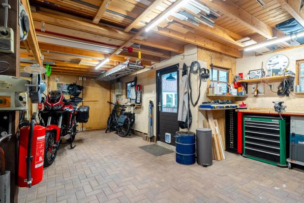 Garage oppervlak: ca. 55 m² beneden + 28 m² boven (woongebruik)