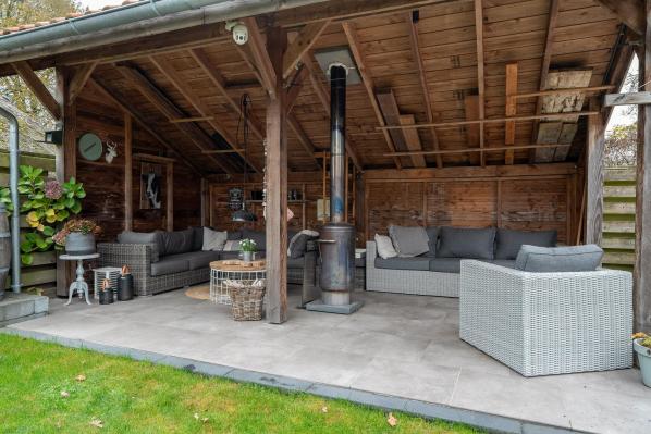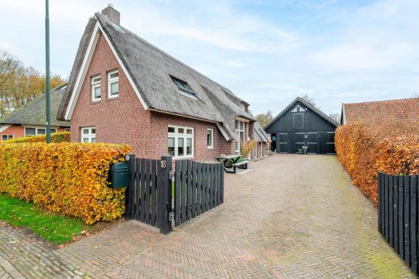 Deze charmante boerderijwoning uit 1962 is door de huidige eigenaren volledig gerenoveerd en voorzien van uitstekende isolatie en nieuwe buitenmuren (2015-2016). Daarnaast is de woning uitgerust van een prachtige, nieuwe rieten kap. Het resultaat is een praktisch, ruim en comfortabel huis met moderne voorzieningen. De begane grond biedt een gezellige, tuingerichte woonkamer en een luxe woonkeuken. Op de verdieping bevinden zich drie slaapkamers en een moderne badkamer. Vanuit de woonkamer heeft u via openslaande deuren toegang tot de keurig aangelegde achtertuin, gelegen op het noordoosten. De tuin is onderhoudsvriendelijk ingericht en biedt meerdere zitplekken, waaronder een riante overdekte ruimte in de kapschuur, compleet met een houtkachel. Daarnaast vindt u een ruime, geïsoleerde garage op het perceel waar u gemakkelijk twee auto’s in kunt parkeren. De bovenverdieping van de garage biedt ruimte voor een hobbyruimte, werkkamer of een mancave. Garage is buiten Elektra (en krachtstroom) tevens voorzien van riolering, gas ,water. De diepe oprit aan de zijkant van de woning biedt plek voor het parkeren van meerdere auto's op eigen terrein afgesloten met automatisch toegangshek inclusief loop poort.