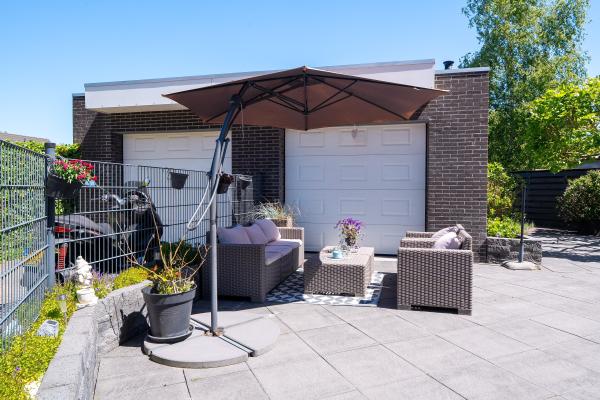 Een dubbele garage met elektrisch bedienbare deuren
