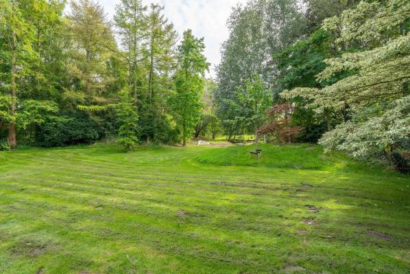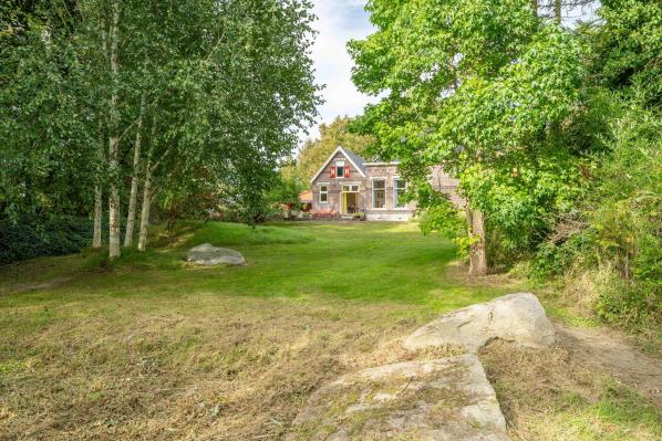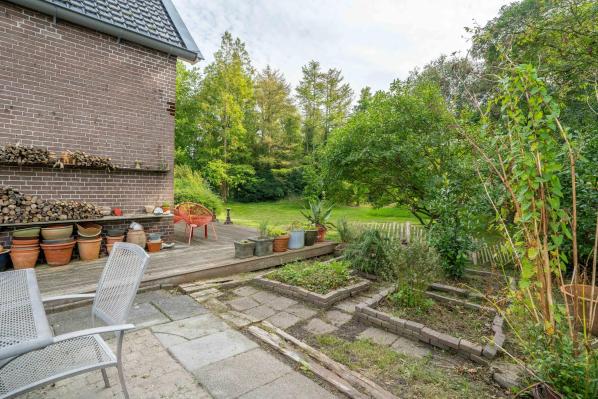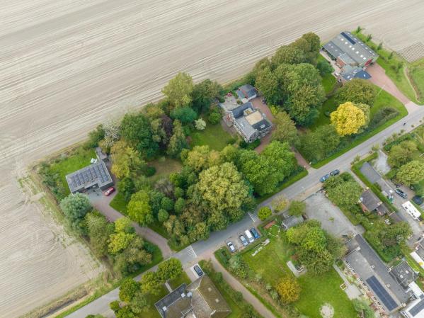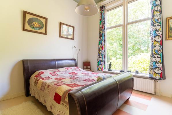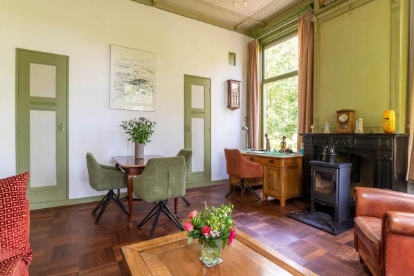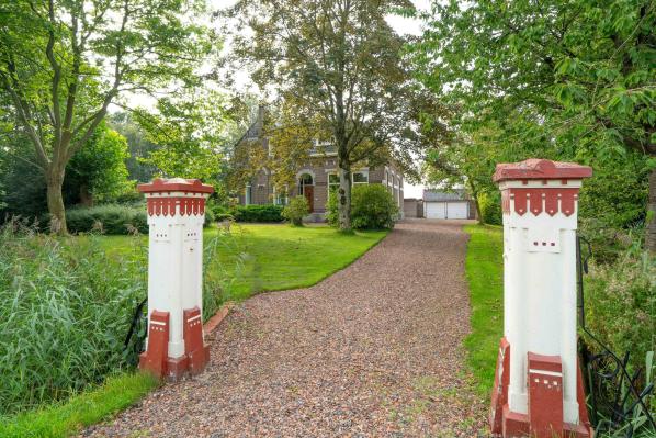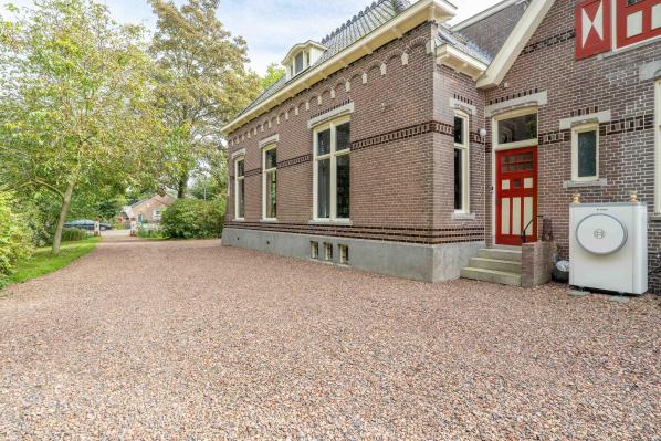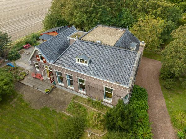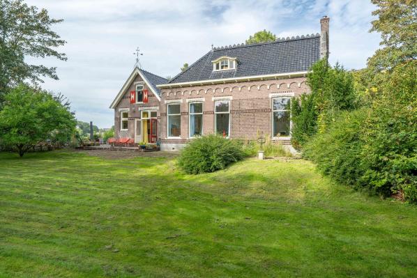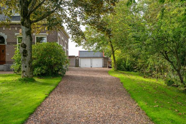 In de afgelopen jaren heeft deze bijzondere woning naast het reguliere onderhoud een aantal belangrijke duurzame verbeteringen ondergaan. Nieuw HR-glas, verbeterde isolatie, een milieuvriendelijke warmtepomp en maar liefst 15 zonnepanelen zorgen voor een hoog niveau van comfort. Bij het betreden van de woning op de begane grond vindt u een prachtige hal met een fraaie trapopgang, een lichte en sfeervolle woonkamer met een opvallende gebogen erker aan de voorkant en een gezellige houtkachel en een woonkeuken. Daarnaast bevindt zich op de begane grond een werk- of slaapkamer, 2e slaapkamer en een moderne badkamer. Boven vindt u nog eens 4 slaapkamers en een 2e badkamer. Deze riante indeling gecombineerd met het verbouwde koetshuis biedt voldoende ruimte voor een groot gezin, maar is ook geschikt voor inwoning, levensloopbestendig wonen en/of het hebben van een kantoor aan huis. Het geheel is omringd door een weelderig terrein van maar liefst 4475 vierkante meter, omgeven door een schilderachtige gracht. De eigen oprit leidt u naar dit idyllische toevluchtsoord. De tuin met vrij uitzicht is op een parkachtige wijze aangelegd en herbergt een rijke variatie aan bloemen en bomen, waaronder margrieten, orchideeën, platanen en rode beuken. Het is een ware oase voor ontspanning en rust.