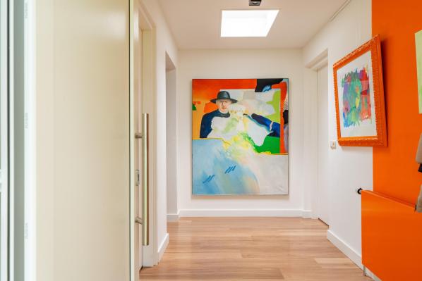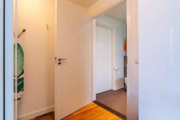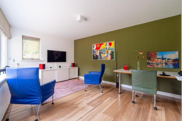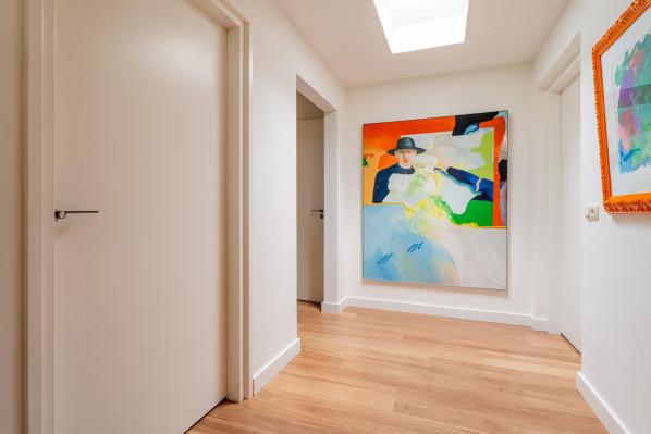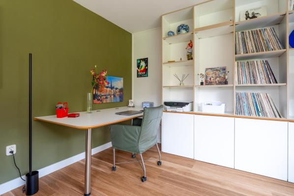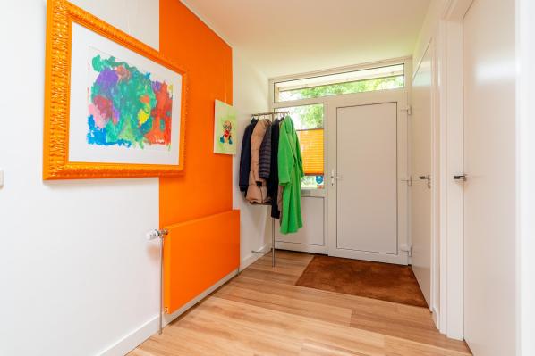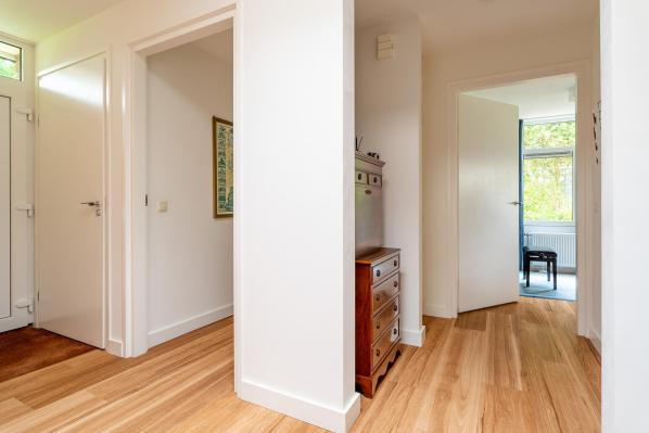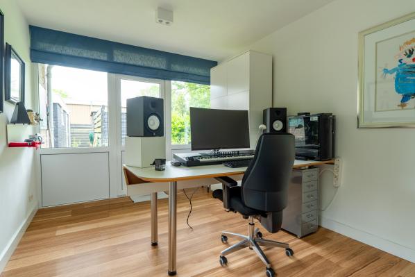 Entree/hal met garderobe, toilet met fonteintje, ruime woonkamer met eetgedeelte welke tevens toegang biedt tot de achtertuin, moderne open keuken voorzien van diverse inbouwapparatuur o.a. Bora inductiekookplaat met afzuigsysteem, Quooker, combi-stoomoven, combi-magnetron. bijkeuken met witgoedaansluiting, kastenwand en toegang naar buiten, kantoor,/3 slaapkamers, moderne badkamer met inloopdouche, wastafelmeubel en wandcloset. De badkamer is zowel te bereiken vanuit de hal als de master bedroom.
