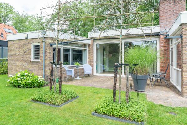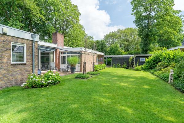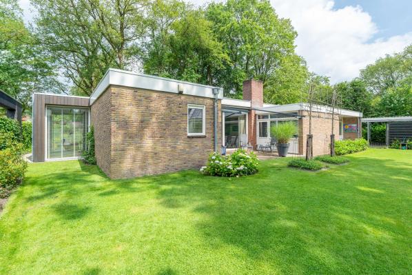 Vrijstaande onderhoudsarme bungalow met tuin op het zuiden in optima forma!Op een prachtige lommerrijke locatie in de villawijk van Glimmen gelegen in perfecte staat verkerende bungalow met vrijstaande garage en een onder architectuur aangelegde tuin rondom.