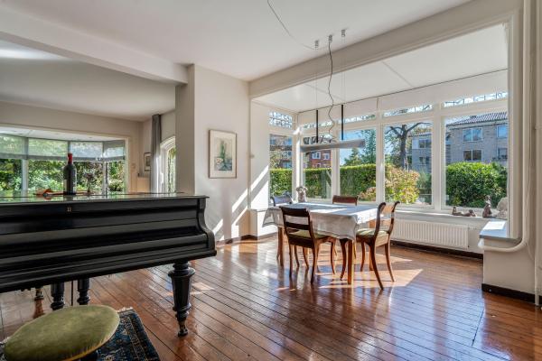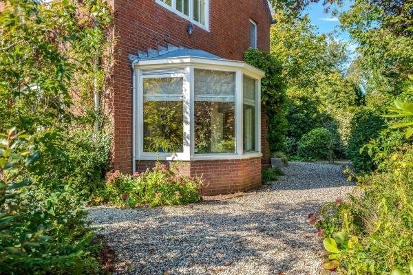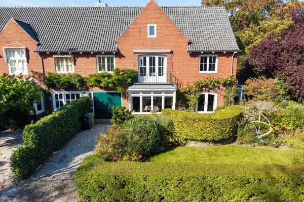 Het huis ademt sfeer en authenticiteit. Originele details en harmonieuze verhoudingen maken de historie voelbaar. De royale living met twee erkers en openslaande deuren naar de tuin vormt het hart van de woning, waar licht en ruimte samenkomen. De aangrenzende lichte keuken met uitzicht op de tuin, en verbonden met een praktische bijkeuken en garage, nodigt uit tot samen koken en tafelen. Onder het huis bevindt zich een provisiekelder. Op de verdiepingen bevinden zich maar liefst zes ruime slaapkamers, elk met eigen wastafels met warm en koud water en twee badkamers. De tweede verdieping biedt volop ruimte voor logees, werken aan huis of het creëren van speel- of hobbyruimte. De beschutte en fraai onderhouden tuin rondom het huis biedt diverse fijne zitplekken om te genieten van rust, groen en buitenlucht. Er is een grote vrijstaande (fietsen)berging en een oprit met plaats voor twee auto’s, met directe toegang tot de garage.