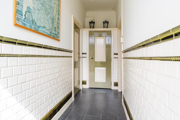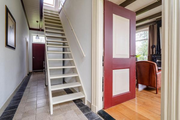 Entree in voormalig no. 3 in hal dwars door het voorhuis. Toegang tot de fraaie woonkamer met houten vloer, veel licht, grote kast en houtkachel. Tevens ingang naar de kelder van 12m² en de trapopgang naar de verdieping. De andere kant van de hal voorziet in toegang tot de woonkeuken en de eetkamer, die tevens een open verbinding met elkaar hebben. De eetkamer sluit aan op de entree van huisnummer 1 met aan het eind van de hal een inbouwkast en verder toegang tot de slaapkamer op de begane grond en de badkamer met bad, douche en wastafel. De badkamer is tevens bereikbaar vanuit de hal met achterdeur en toegang tot de eerder vermelde woonkeuken en aan de andere zijde het gastentoilet en de bijkeuken, die op haar beurt weer toegang verleent tot de tweede bijkeuken met toegang tot de nader in te richten deel van ongeveer 146m².