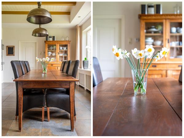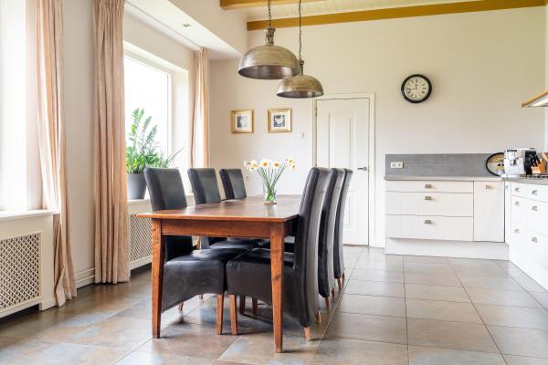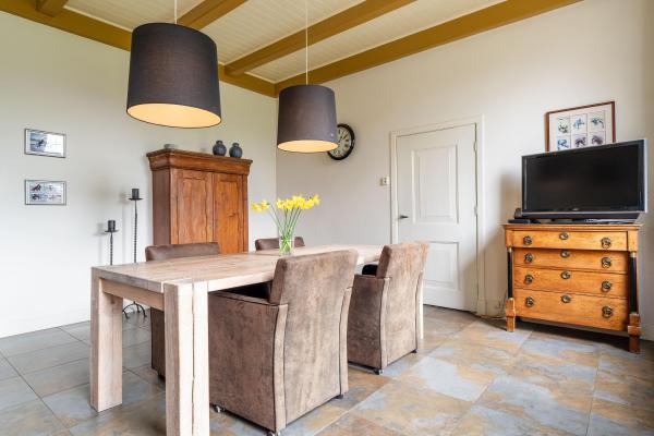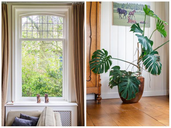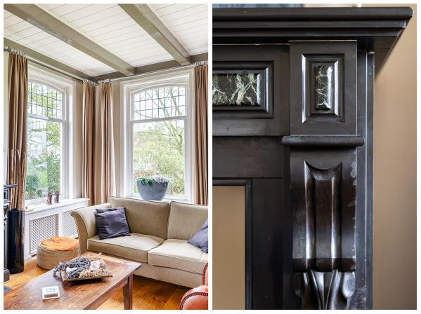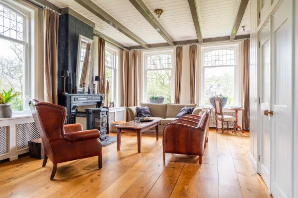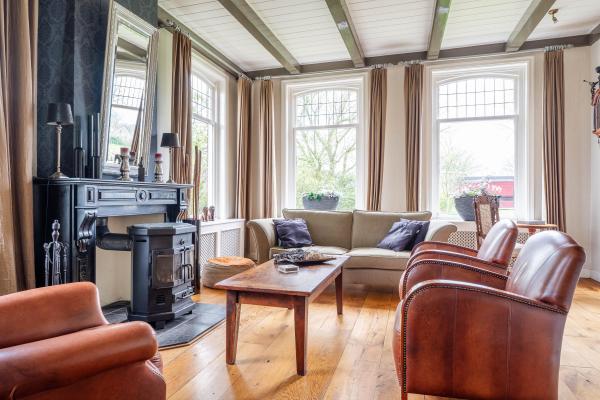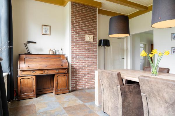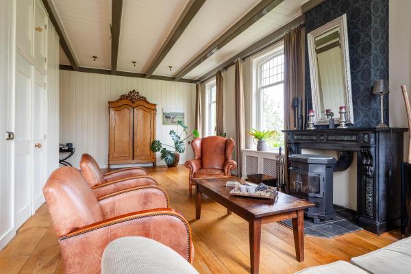 Het woongedeelte is voorzien van vele stijlkenmerken, zoals glas in lood ramen, balkenplafonds, paneeldeuren etc.