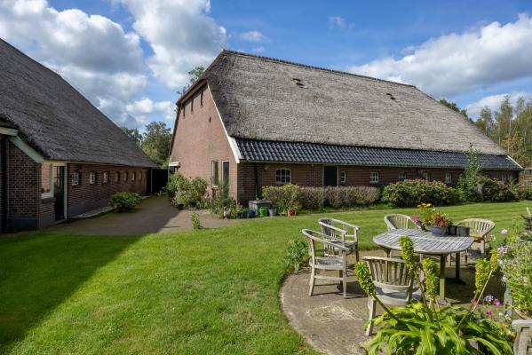Op een centrale locatie in het karakteristieke boerderijdorp Noord-Sleen gelegen riante rietgedekte woonboerderij met vele gebruiksmogelijkheden.