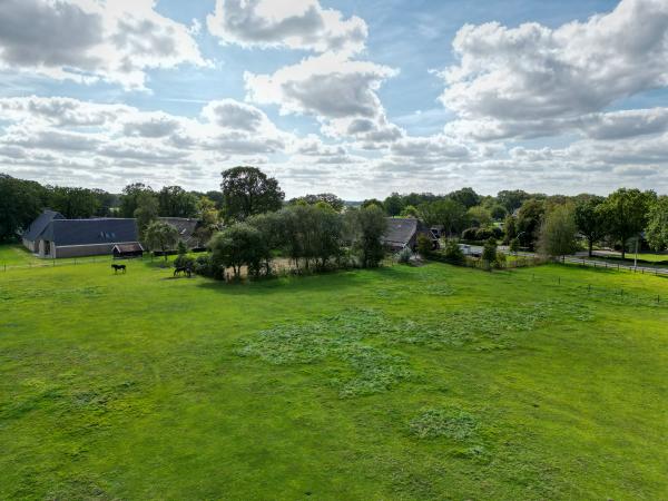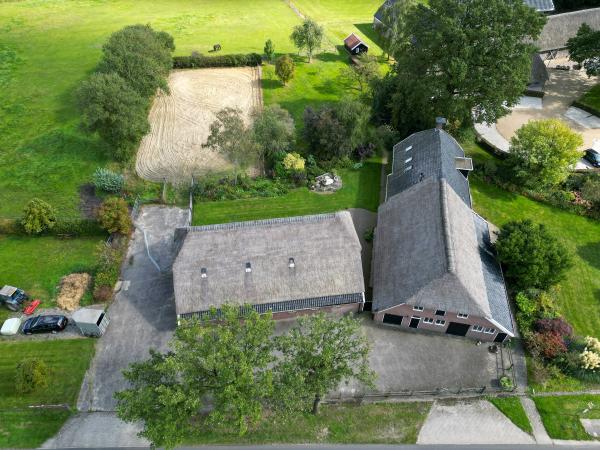 De voormalige deel biedt legio mogelijkheden voor bijvoorbeeld praktijk/ bedrijf aan huis, of zelfs tweede bewoning indien de oude huisnummers hersteld worden. De naastgelegen schuur van 20 x 14m beschikt bij belangstelling over een 8 tal paardenboxen, zodat er ook invulling ontstaat voor het gebruik van de rijbak (20 x 40m) met verlichting en het aansluitende grasland. Men zou als invulling van de schuur ook kunnen denken aan een fijne ruimte voor stalling van klassieke auto's, koetsen, of elke invulling van een enthousiaste verzamelaar. Rondom de woonboerderij is een boeren siertuin met fruitbomen aangelegd tot aan de rijbak. Voor het overige is er om het bijgebouw voorzien in een verhard erf en is het overgrote deel van het perceel aangewend als weide.