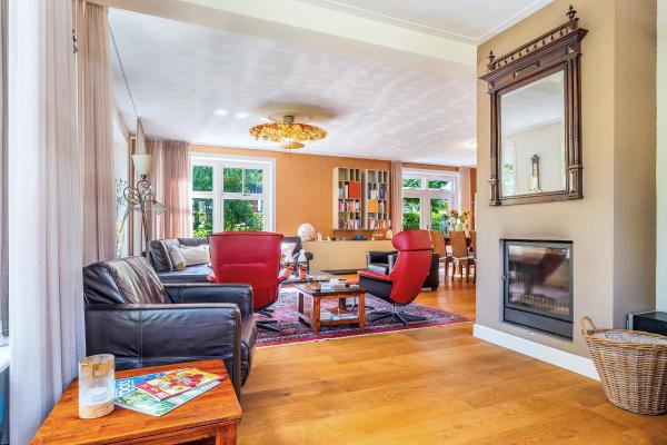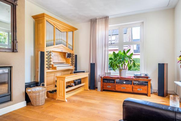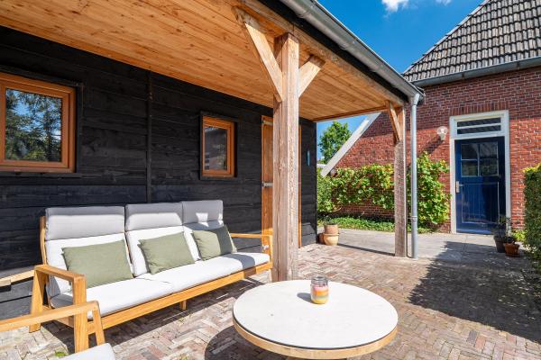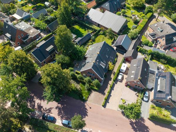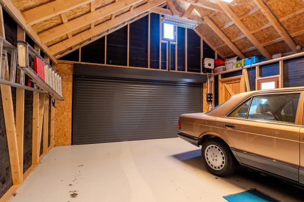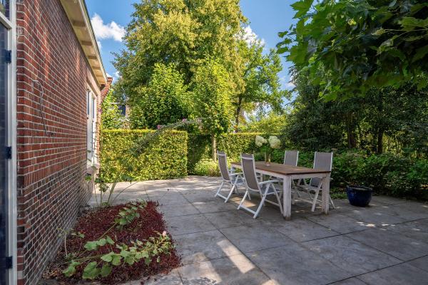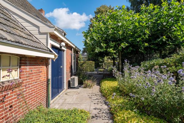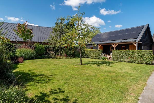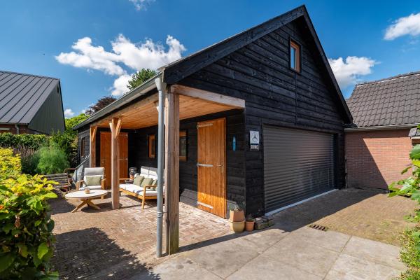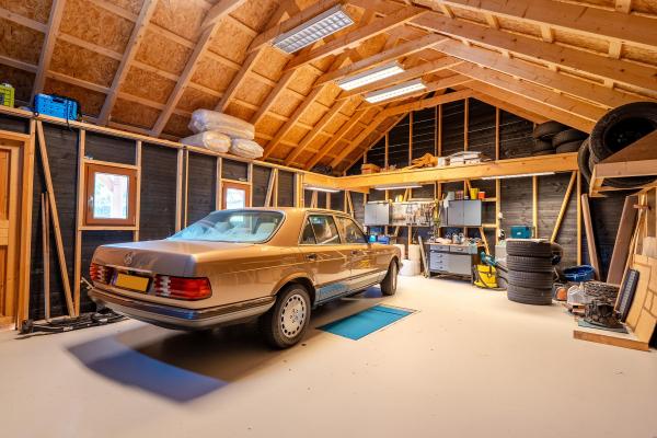 In de onder architectuur aangelegde tuin zijn meerdere zitplekken gecreëerd, deels overdekt, zodat u op elk moment van de dag kunt genieten van de rust en privacy in de buitenlucht. Achter de woning staat de vrijstaande houten garage, gebouwd in 2021. Deze heeft een oppervlakte van circa 52 m², is voorzien van een elektrische deur en een schaarbrug, en biedt ruimte aan twee auto’s.