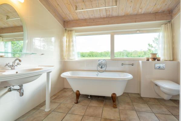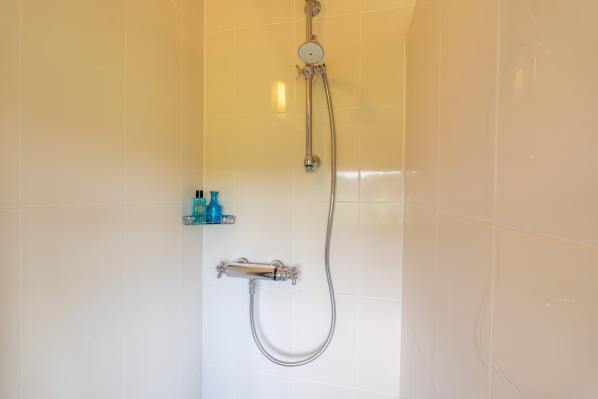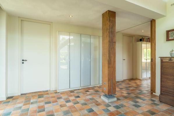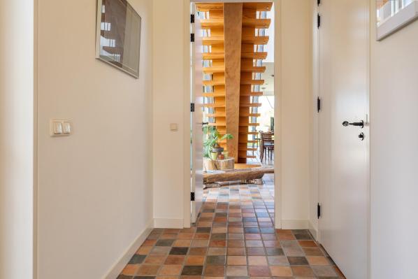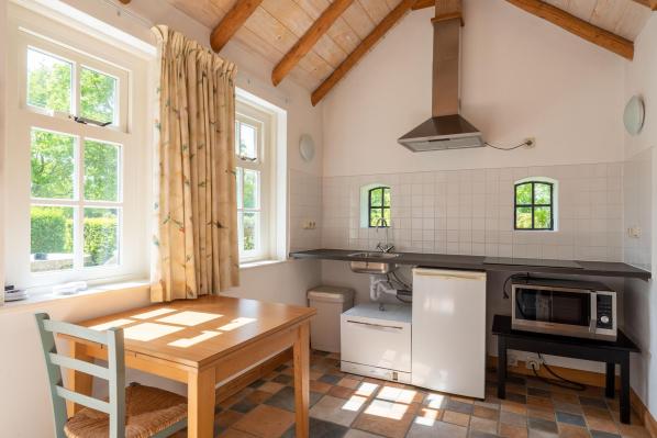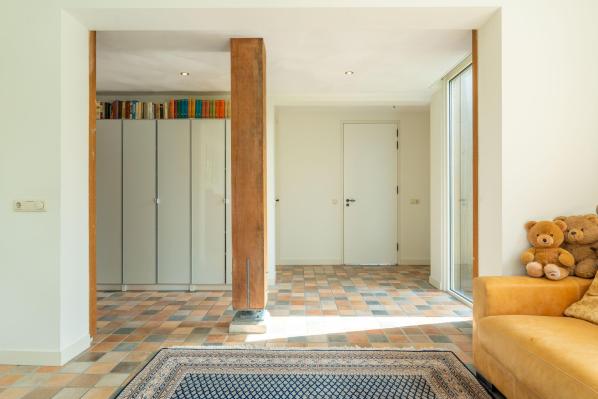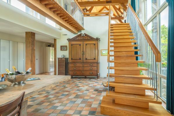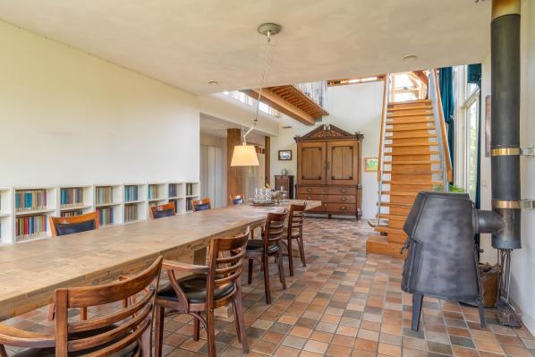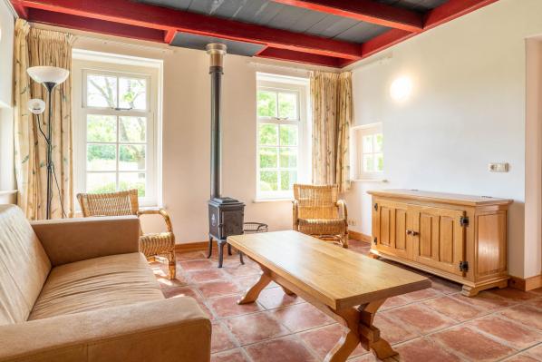 Het hele hoofdgebouw en het woudhuisje beschikken over een plavuizenvloer i.c.m. vloerverwarming