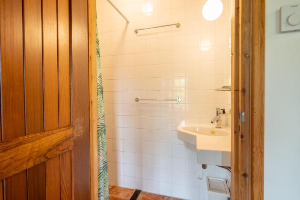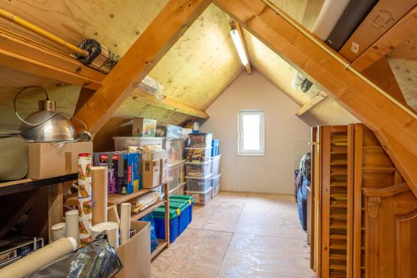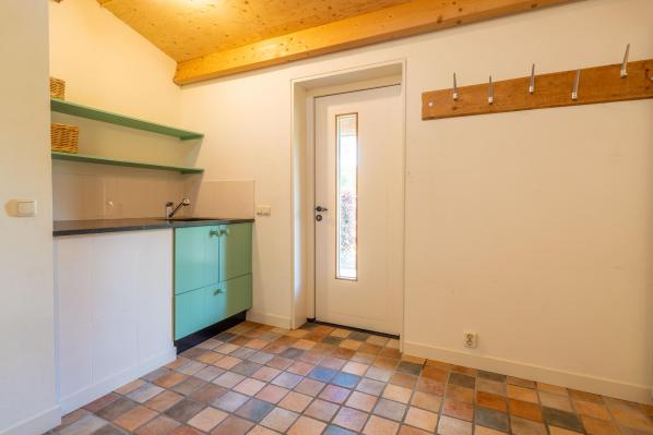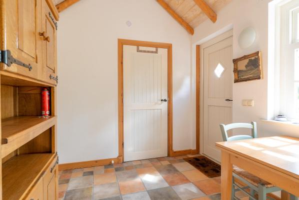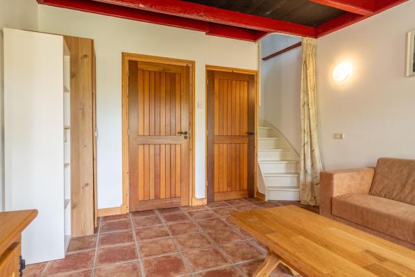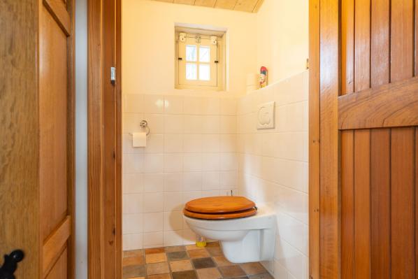 Keuken, voorkamer met houtkachel, toilet, badkamer met douche en wastafel. Hierboven op zolder bevindt zich een slaapkamer, hieraan vast de genoemde schuur met grote zolder.