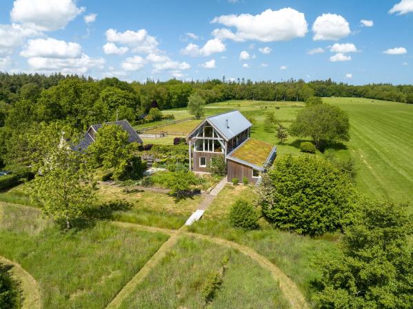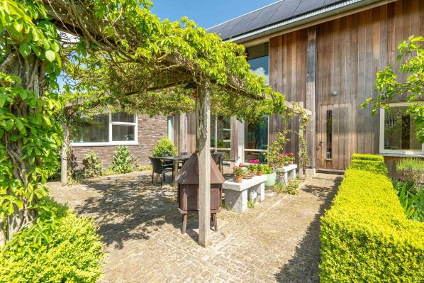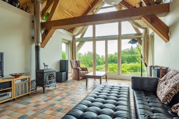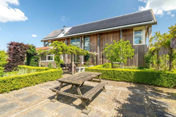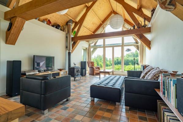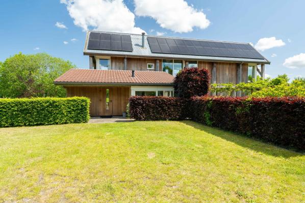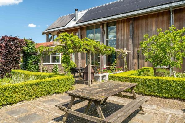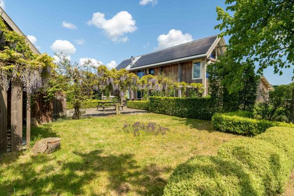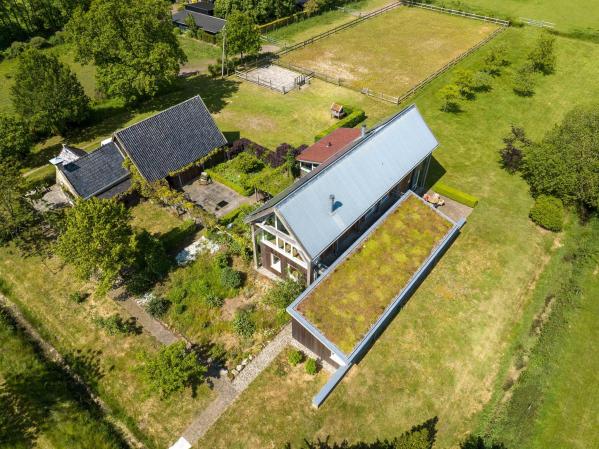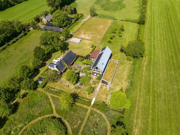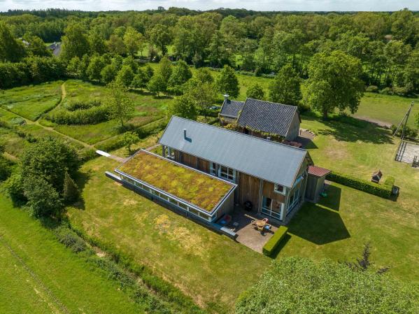 Het landhuis is in 2007 met oog voor natuurlijke elementen en harmonie met de omgeving ontworpen en gebouwd. Het bestaat uit drie afzonderlijke, met elkaar verbonden delen. Binnenin zorgen de ruime kamers en grote ramen voor een naadloze overgang tussen binnen en buiten. De buitenkant is vervaardigd met onderhoudsvrije materialen, en dankzij een energielabel A en het ontbreken van een gasaansluiting dragen de huidige eigenaren bij aan duurzaamheid. Met een (aard-)warmtepomp, 34 zonnepanelen, uitstekende isolatie en een warmteterugwinsysteem, is deze woning energieneutraal. Bovendien is er glasvezel beschikbaar voor snel internet en televisie. De schuur is uitgerust met een 3-fase meterkast met krachtstroom, ideaal in combinatie met zonne-energie voor het opladen van een elektrische auto. Bij de installatie van de warmtepomp met open bron is tevens een eigen waterbron aangelegd.