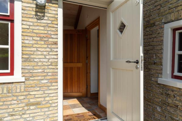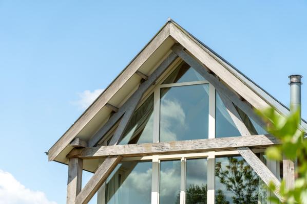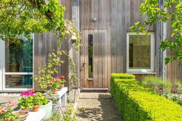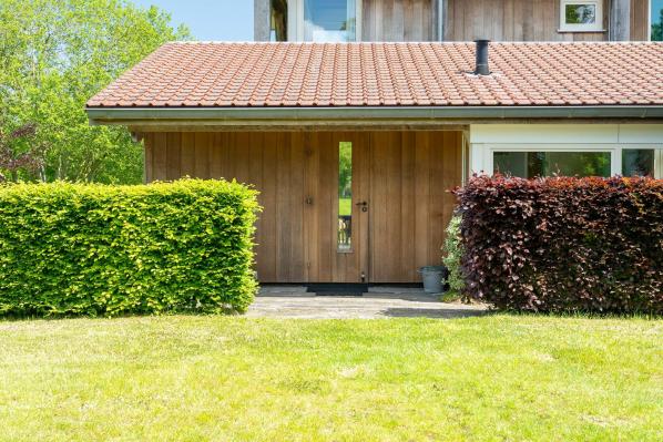 Onderhoudsvrije buitenzijde door red cedar bekleding en aluminium kozijnen.