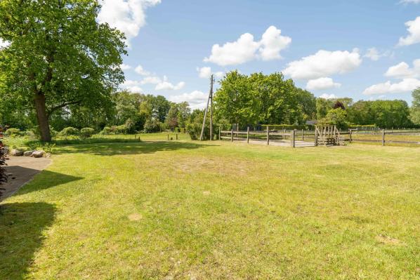 Het charmante bijgebouw biedt een volledig appartement met aangrenzende schuur waarin een garage voor twee auto's, twee paardenboxen en een ruime zolder met lier zijn gevestigd. Dit alles op bijna 4 hectare grond, inclusief tuinen, terrassen, weilanden en een paardenbak geschikt voor dressuur- en mensport. Vanaf het erf kunt u genieten van talloze recreatiemogelijkheden te voet, per fiets of te paard. Binnen een kwartier bereikt u de nabijgelegen golfclub Beetsterzwaag. Bovendien is er voldoende parkeergelegenheid op eigen terrein voor meerdere auto's.