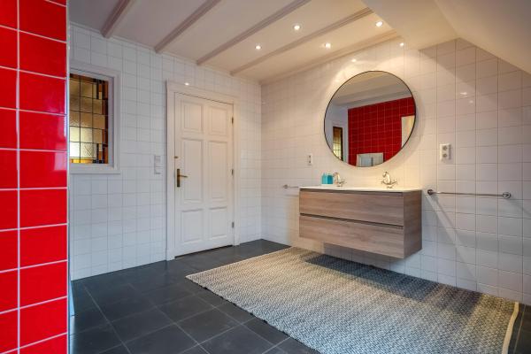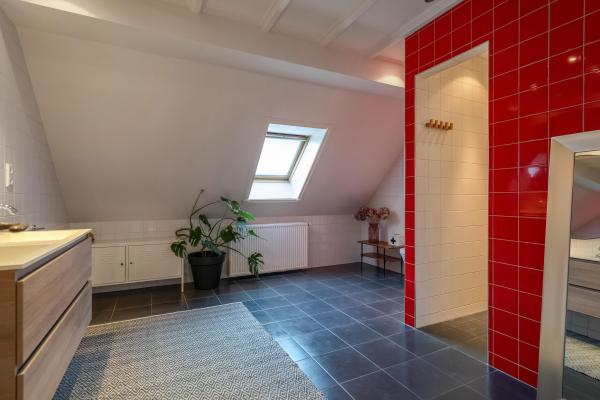 Ruime overloop, 4 slaapkamers, nette 2e badkamer met inloopdouche en wastafelmeubel met 2 kranen, toilet.