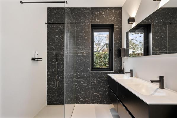 Via de ruime hal/entree betreedt u deze prachtige woning. De lichte woonkamer is voorzien van grote raampartijen, waardoor het daglicht rijkelijk naar binnen valt. Vanuit de woonkamer heeft u directe toegang tot de patio, een heerlijke plek om te ontspannen. De moderne hoekkeuken is uitgerust met inbouwapparatuur, waaronder een oven en een handige Quooker. Vanuit de hal bereikt u 2x een toilet met fontein, de vijf comfortabele slaapkamers (ca. 9, 10,5, 10,5, 15,5 en 15,5 m²), en twee luxe badkamers. De eerste badkamer is voorzien van een dubbele wastafel en een inloopdouche, terwijl de tweede badkamer beschikt over een dubbele wastafel, een inloopdouche en een derde toilet. Daarnaast biedt de ruime garage tal van mogelijkheden, bijvoorbeeld voor opslag, een hobbyruimte of zelfs een thuiswerkplek.