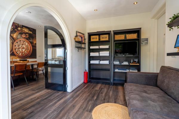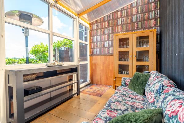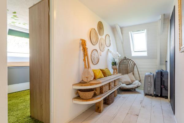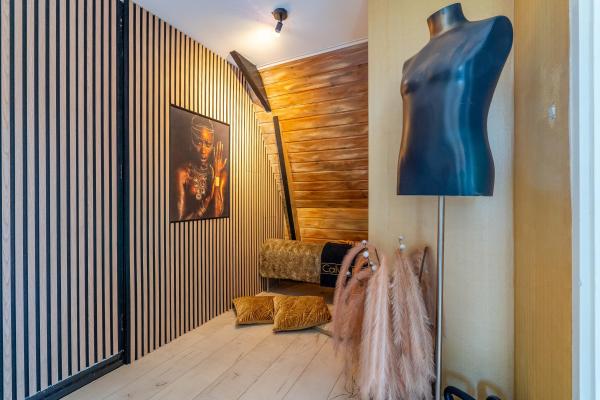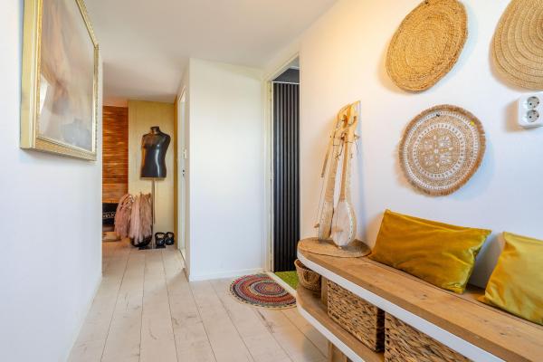Het voorhuis biedt op de begane grond een ruime woonkamer met open keuken alsmede een werkkamer. Op de verdieping bevinden zich 3 ruime slaapkamers met een moderne badkamer (2024). Vanuit de woonkeuken is een achterhal bereikbaar met een tuinkamer die leidt tot de privétuin van de woning. Er is een duidelijke scheiding gemaakt tussen het voorhuis zijnde het woonhuis en de achtergelegen saunafaciliteit.