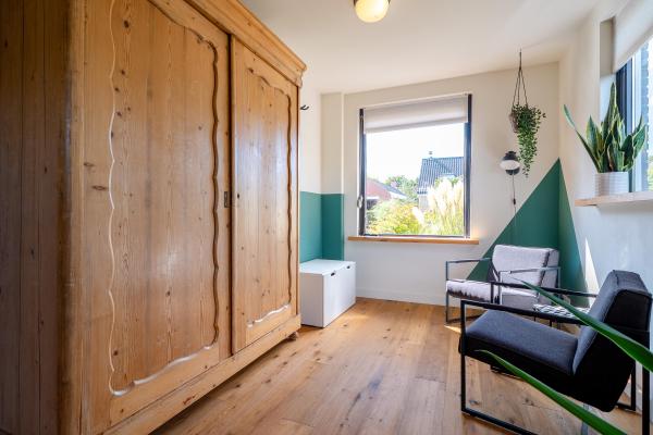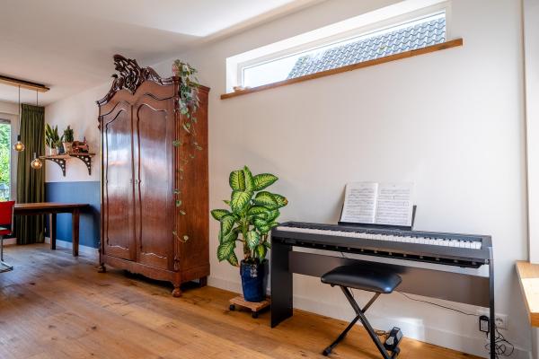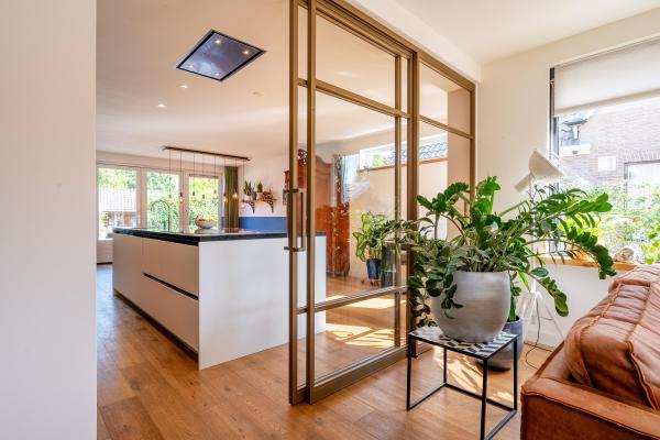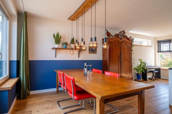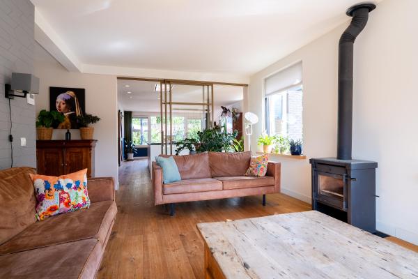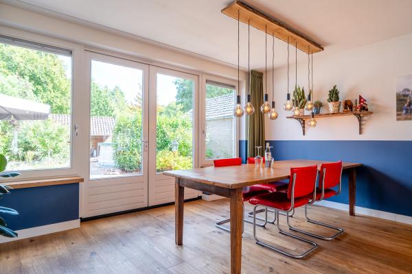 De woning is zorgvuldig onderhouden en aan de achterzijde royaal uitgebouwd, waardoor de begane grond verrassend ruim en praktisch is ingedeeld. Bij binnenkomst via de hal betreedt u de lichte, U-vormige living met sfeervolle houtkachel. De moderne open keuken met kookeiland vormt het hart van het huis en is op stijlvolle wijze afgescheiden door een stalen schuifdeur. Op de eerste verdieping bevinden zich maar liefst vijf slaapkamers en twee badkamers. Dit maakt de woning perfect geschikt voor gezinsbewoning of voor wie graag gasten ontvangt en ruimte wil om te werken of hobby’s uit te oefenen. Op het gebied van duurzaamheid en comfort is deze woning helemaal up-to-date. Dankzij de goede isolatie, de aanwezigheid van maar liefst 37 zonnepanelen én een moderne warmtepomp beschikt de woning over een uitstekend energielabel: A++++. De achtertuin is besloten en biedt meerdere gezellige zitplekken. Een heerlijke plek om tot rust te komen en te genieten van de buitenlucht. Via zowel de oprit als de tuin is de ruime garage van ca. 55 m² met zolder bereikbaar. Hier is volop plaats voor fietsen, opslag of het uitoefenen van een hobby die wat extra ruimte vraagt.