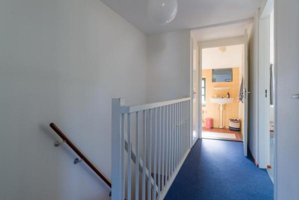 Overloop, toilet met fonteintje, 2 slaapkamers, badkamer met douche en wastafel.