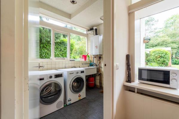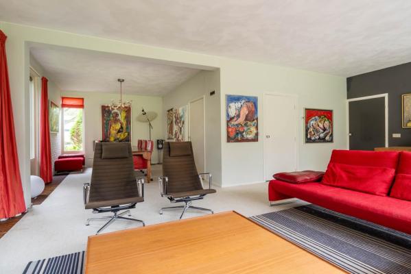 Deze villa uit de jaren '60 verdient hier en daar modernisering, maar de uitstekende ligging en de ruimte in en rondom deze villa bieden genoeg mogelijkheden om het helemaal naar eigen smaak en wensen aan te passen. De villa is licht dankzij de talrijke grote ramen en biedt royale leefruimte. Met 6 ruime slaapkamers en 2 badkamers is deze villa uitstekend geschikt voor een groot gezin en/of het inrichten van een kantoor- of praktijkruimte aan huis. De villa is omgeven door een volgroeide tuin met meerdere zitplekken, waardoor het een oase van rust en privacy voor de bewoners vormt. Omringd door hagen en beschut door enkele majestueuze bomen biedt de tuin de perfecte balans tussen zon en schaduw op de verschillende terrassen. En hoe bijzonder dat u hier regelmatig bezoek krijgt van diverse vogels, egels en eekhoorntjes. Aan de voorzijde van de villa vindt u een ruime oprit met plaats voor meerdere auto's. Daarnaast beschikt het geheel over een grote vrijstaande garage die ideaal is voor extra opslagruimte of het stallen van één of twee auto's.
