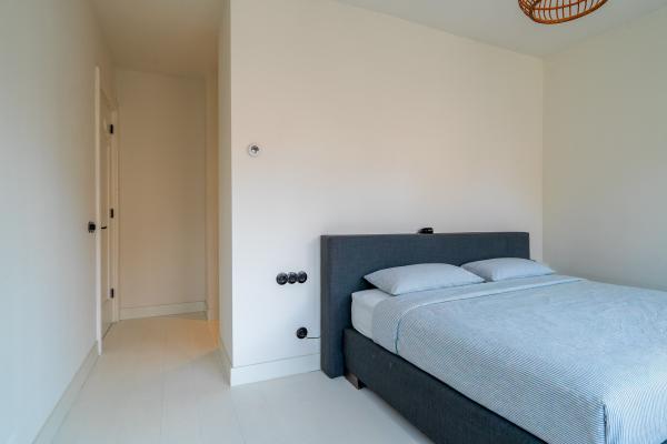 Overloop, 4 slaapkamers, waarvan de master bedroom met inloopkast en toegang tot balkon achterzijde, luxe badkamer met douche, vrijstaand bad, wastafel met 2 kranen en separaat toilet.