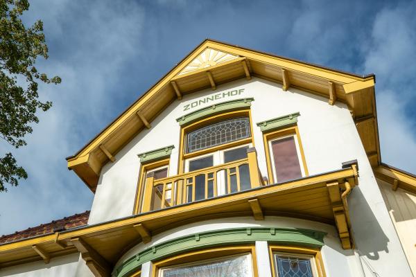 Op een prachtige locatie in Grijpskerk, verscholen tussen het groen, staat Villa Zonnehof. Een karakteristieke en onder architectuur gebouwd woonhuis uit 1915. Oorspronkelijk gebouwd als rentenierswoning met aangebouwd koetshuis, ademt deze villa nog altijd de sfeer van vervlogen tijden met haar rijk gedetailleerde gevels, hoge plafonds, ornamenten en overvloed aan licht.