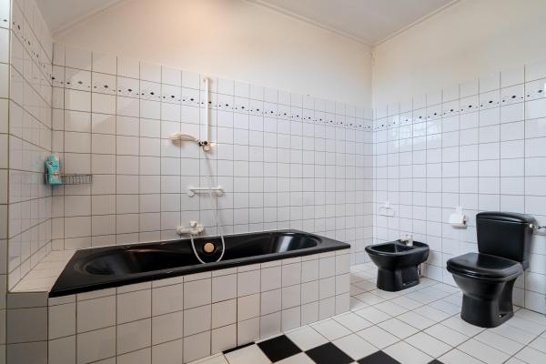 Overloop, 4 (slaap)kamers, tweede badkamer met douche, ligbad, wastafel, toilet en bidet, wasruimte/berging.