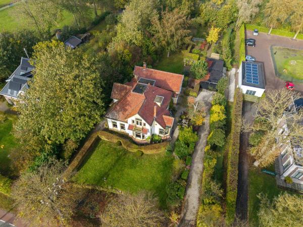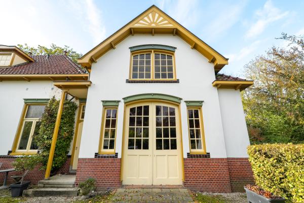 Bij binnenkomst via de stijlvolle vestibule en hal betreedt u een warme en sfeervolle kamer en suite met erker, houtkachel en een lichte serre. Op de begane grond bevinden zich verder een dichte keuken die aansluit op de eetkamer. Vanuit de hal komt u in een (werk)kamer met erker die doorgaat naar de voormalige keukenruimte, een slaapkamer en een doucheruimte. Alle voorzieningen zijn aanwezig om gelijkvloers te wonen, wat de woning ook levensloopbestendig maakt. Via het riante trappenhuis bereikt u de bovenverdieping voorzien van vier slaapkamers en een badkamer. De woning biedt veel mogelijkheden voor een gezin of bewoners die van ruimte, sfeer en schoonheid houden. De woning is de afgelopen jaren met zorg en liefde bewoond met behoud van veel karakteristieke en originele elementen. Zoals de geëtste ramen, de paardenstal met ruif en de glas-in-lood ramen. Het riante perceel van maar liefst 3.024 m² is fraai aangelegd en biedt volop privacy. Middels de fraaie poort bereikt u de oprit met parkeergelegenheid voor meerdere auto’s. Het koetshuis met zolder biedt de mogelijkheid van een inpandige garage. In de diepe, besloten achtertuin treft u een terras en diverse zitplekken. De tuinarchitect heeft er verschillende sferen gecreëerd middels een fruitboomgaard, moestuin, kas, kippenren,etc. De royale hobbyschuur biedt plaats voor bijvoorbeeld fietsen, tuingereedschap en een auto.