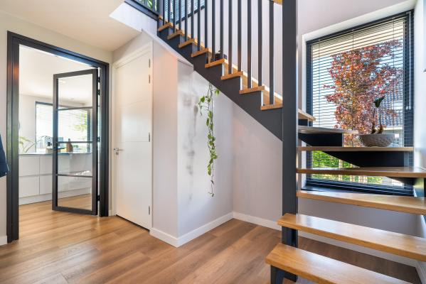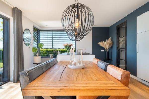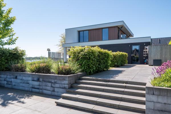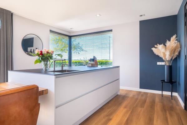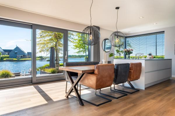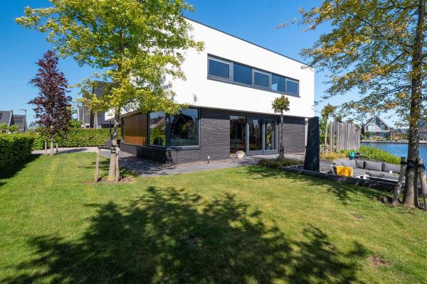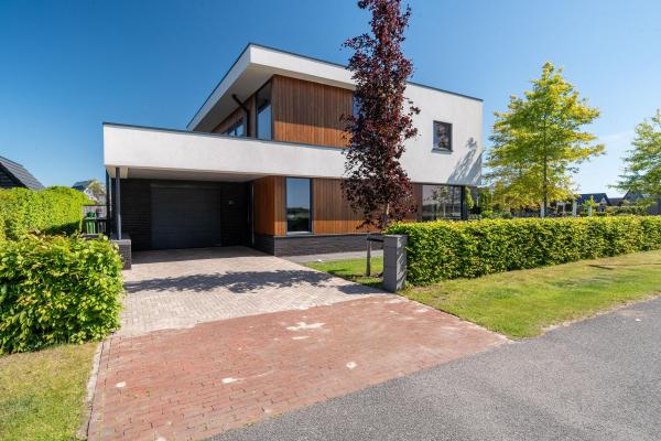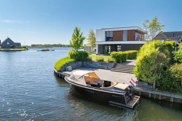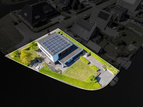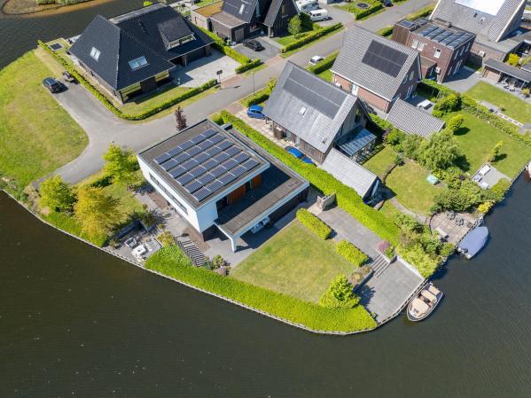 Deze riante villa is hoogwaardig afgewerkt met een mix van natuurlijke materialen en warme tinten, wat zorgt voor een sfeervolle en luxe uitstraling. De royale, tuingerichte living met grote raampartijen staat in open verbinding met de luxe keuken, die is voorzien van hoogwaardig inbouwapparatuur – een perfecte plek om samen te koken, borrelen en genieten. Op de eerste verdieping bevinden zich vier ruime slaapkamers, waaronder een luxe master bedroom met een eigen walk-in-closet. De moderne badkamer is van alle gemakken voorzien. Dankzij de praktische indeling en de royale woonoppervlakte is dit een ideaal familiehuis waar iedereen zijn eigen plekje vindt. Ook op het gebied van duurzaamheid zit u hier helemaal goed. De woning is uitstekend geïsoleerd, beschikt over een warmtepomp én maar liefst 30 zonnepanelen. Dit alles resulteert in een zeer gunstig energielabel A+. De verzorgde achtertuin op het noordoosten is een waar paradijs. Start de dag op het overdekte terras en sluit de dag af met een drankje op één van de zonneterrassen. Met een eigen aanlegsteiger ligt het waterleven letterlijk aan uw voeten – of u nu wilt varen, suppen of gewoon genieten van het uitzicht. Aan de voorzijde van de woning is een fraai aangelegde tuin en er is voldoende parkeergelegenheid op de eigen oprit.