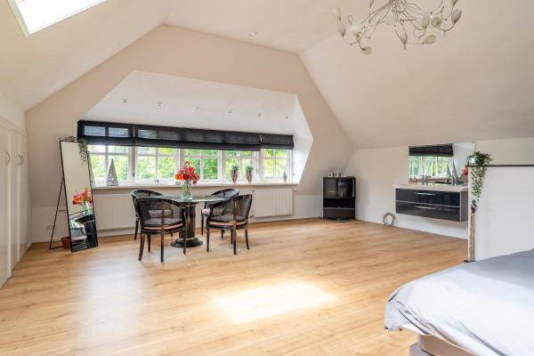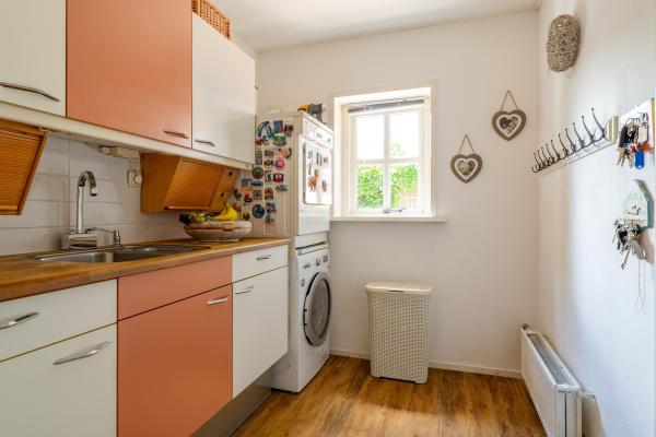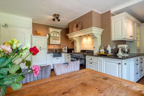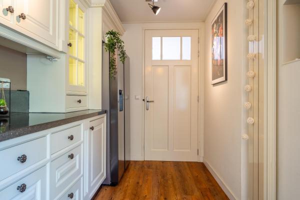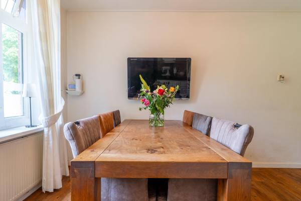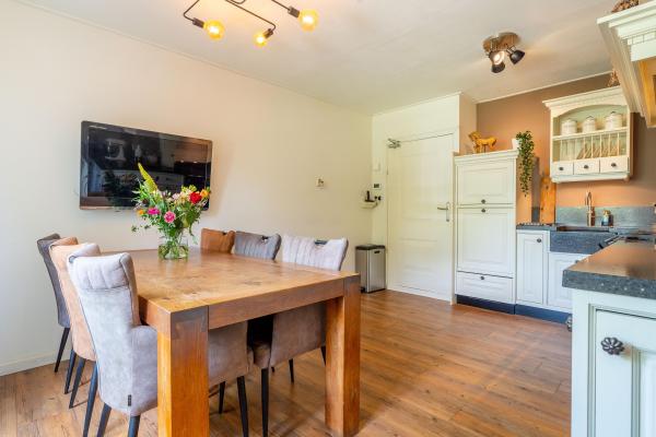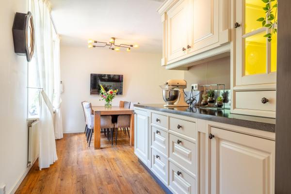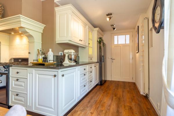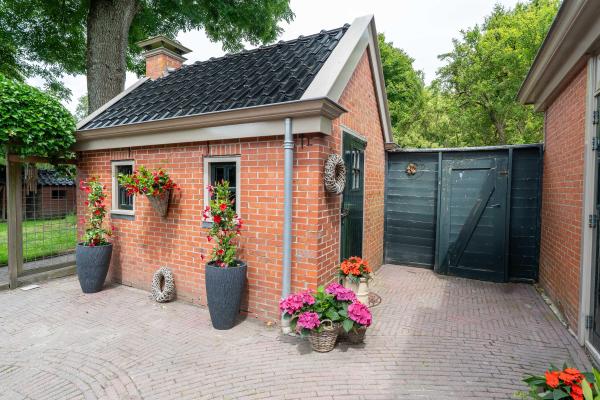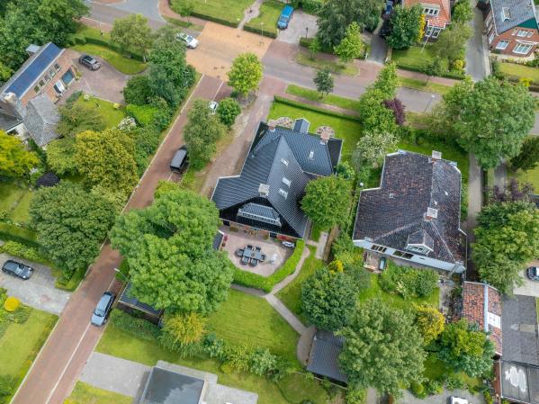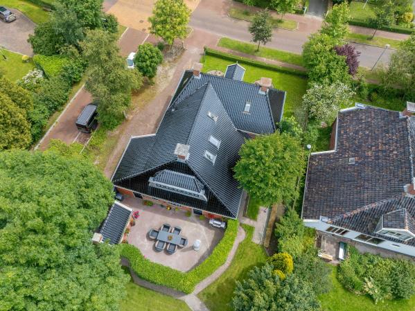 Het huis is door de jaren heen gemoderniseerd naar moderne maatstaven en is telkens goed onderhouden. Als u op zoek bent naar een riante woning met karakter die instapklaar is dan hoeft u niet verder te zoeken! Het voorhuis wordt opgedeeld door een brede hal met aan weerskanten een kamer. De woonkamer bevindt zich aan de zuidzijde van het voorhuis en aan de noordzijde is thans de kapsalon van de eigenaresse gevestigd. Dit geeft aan dat het huis zeer geschikt is om een bedrijf of kantoor aan huis te vestigen. De entree tot deze ruimte is direct naast de voordeur waardoor bezoek niet door het woongedeelte hoeft. In het achterhuis bevinden zich een landelijke handgemaakte eikenhouten woonkeuken met achtergelegen bijkeuken. Vanuit de bijkeuken is er een doorloop naar de inpandige garage/berging met toegang tot de oprit en achtertuin. Aan de andere kant van het achterhuis bevinden zich 2 slaapkamers en een luxe badkamer met ligbad, douche, toilet, dubbele wastafel én sauna.