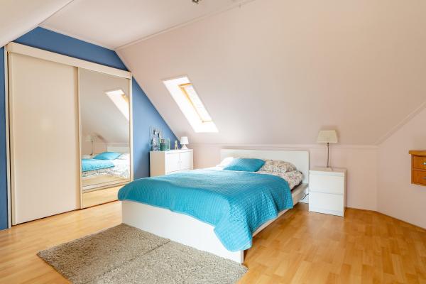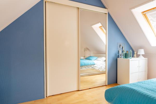 Overloop, 2 slaapkamers met dakramen en één met een riante inloopkast.