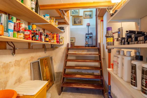 Entree, hal met aan weerszijden een riante woonkamer en/of werkkamer en toegang naar de wijn- en provisiekelder. Het achterhuis leidt naar de woonkeuken met vloerverwarming en inbouwapparatuur. Vanuit de keuken is de bijkeuken c.q. wasruimte bereikbaar met een doorloop naar de inpandige garage. Voorts bevinden zich in het achterhuis zich nog 2 slaapkamers en een luxe volledig geoutilleerde badkamer.