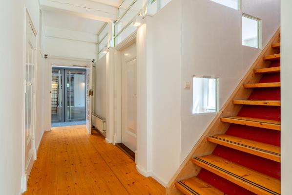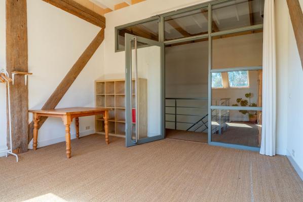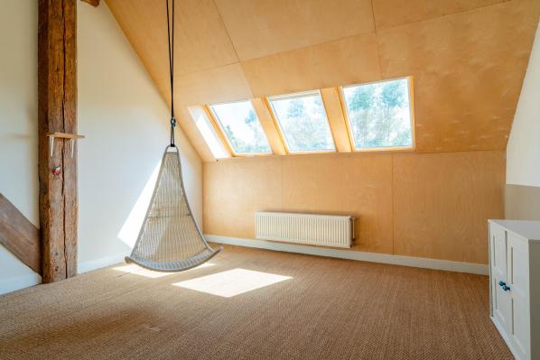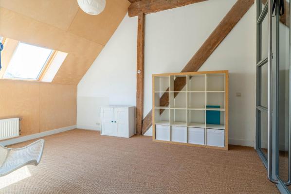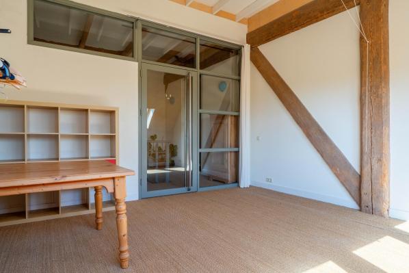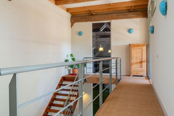 Het voorhuis en het nieuwe gedeelte in de schuur hebben een separate opgang waarbij het nieuwe gedeelte beschikte over een ruime overloop, 2 riante slaapkamers. Via de trapopgang in het voorhuis bereikt u een royale multifunctionele ruimte.