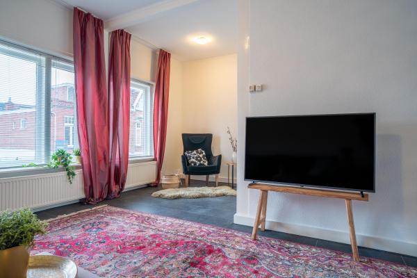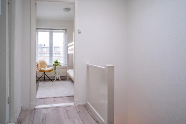 In deze leuke bovenwoning uit de jaren ’30 komen authentieke details en een eigentijdse woonbeleving moeiteloos samen. Op de eerste verdieping vindt u een lichte L-vormige living met hoog plafond en open keuken met toegang tot het dakterras. De tweede verdieping biedt drie slaapkamers, waarvan twee royaal bemeten, en een nette badkamer. Vanuit de keuken/bijkeuken stapt u zo het ruime dakterras van circa 22 m² op. Dé plek om in alle rust van buiten te genieten. Op de begane grond vindt u een indrukwekkende inpandige garage van maar liefst ca. 90 m². Deze ruimte leent zich perfect voor een grote hobby, atelier of werkruimte aan huis, maar biedt ook voldoende plaats voor het parkeren van circa vier auto’s.