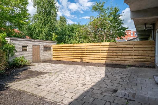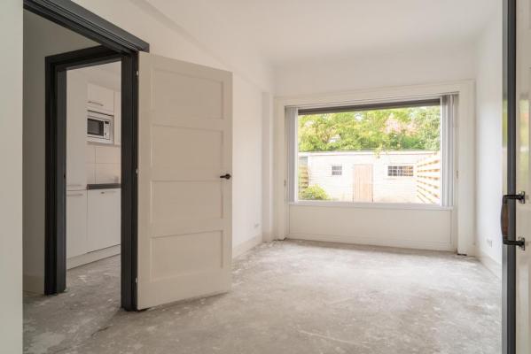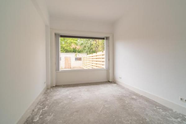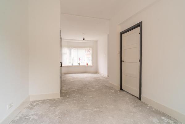 Het betreft een ruime benedenwoning met twee slaapkamers, een royale living en een zonnige tuin. De woning is van binnen volledig gestript en totaal gemoderniseerd. Je hoeft alleen nog een vloer naar eigen smaak in te leggen op de nieuw gestorte betonvloer die voorzien is van vloerverwarming en dan is de woning klaar voor jaren lang woongenot. De tuin is gelegen op het Zuid-Westen en beschikt over een grote garage/berging van 23m².
